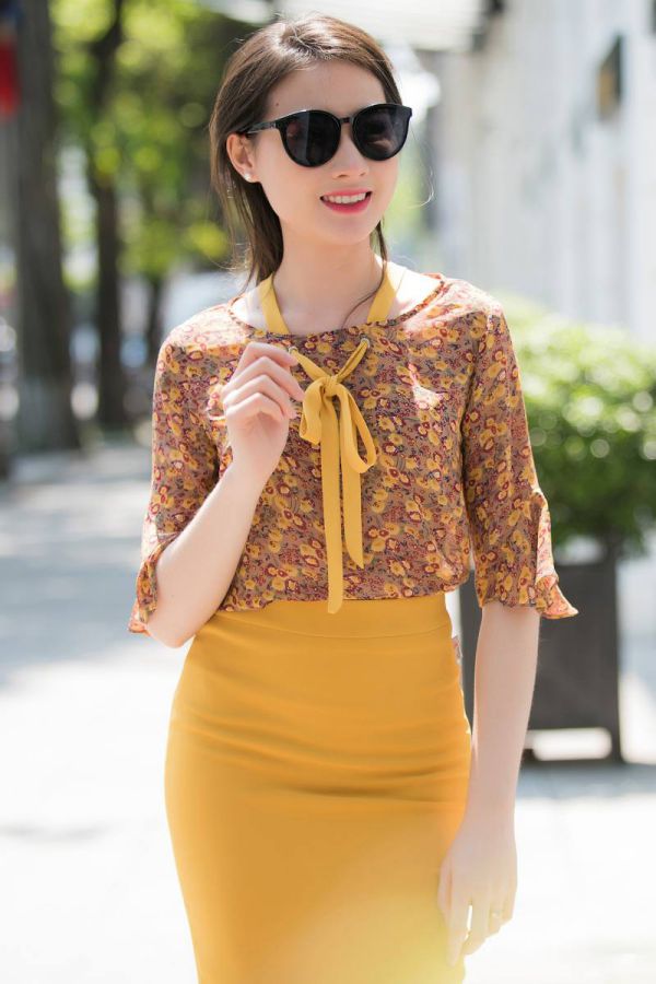 Cách mix phổ cập và được chị em ưu thích nhất vẫn là phối với chân váy, quần âu .