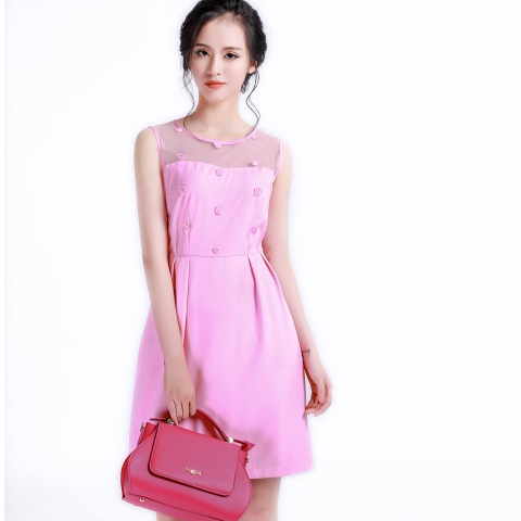 Đầm công sở thời trang sát nách + phần cổ nhấn nhá, cách điệu