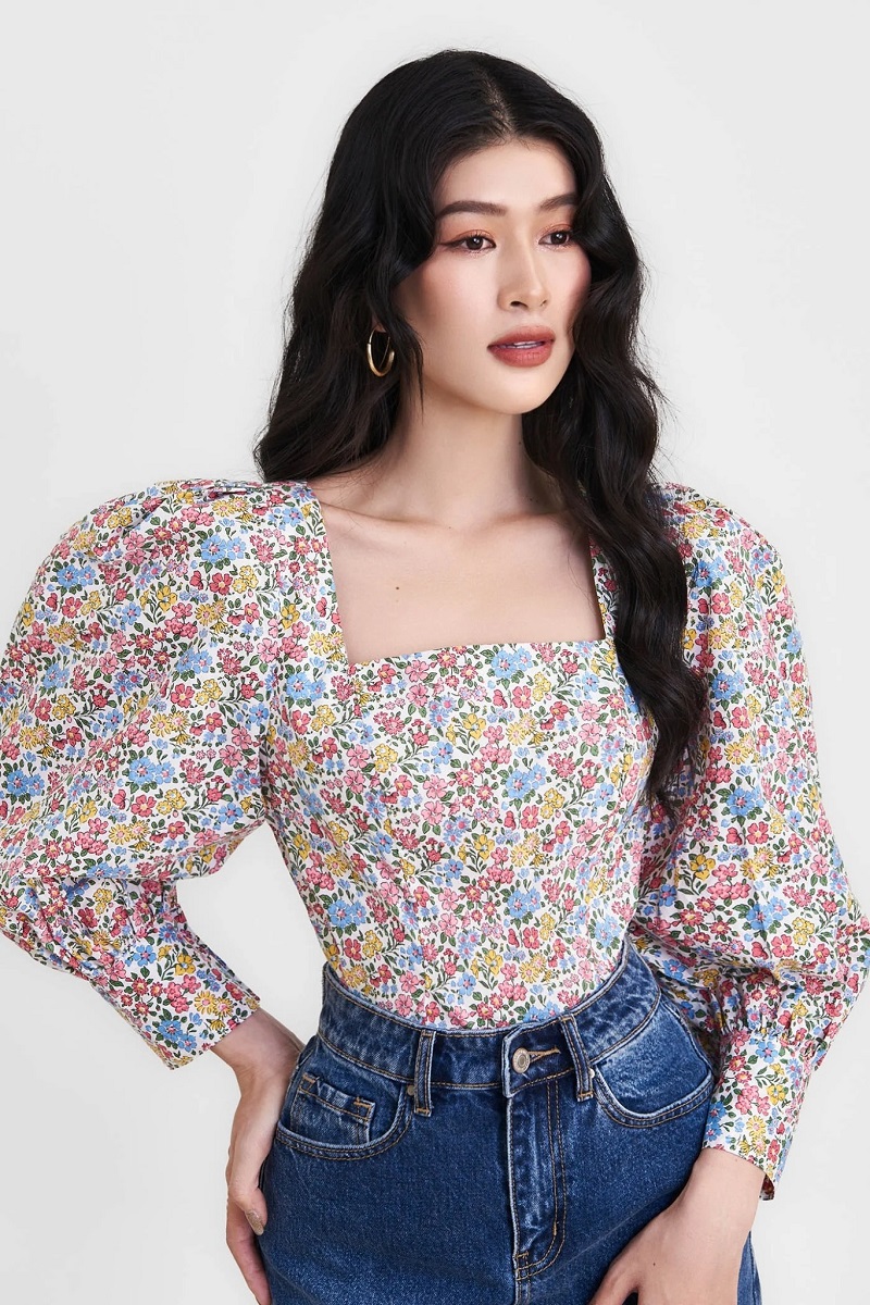 Áo cổ vuông tay bồng
