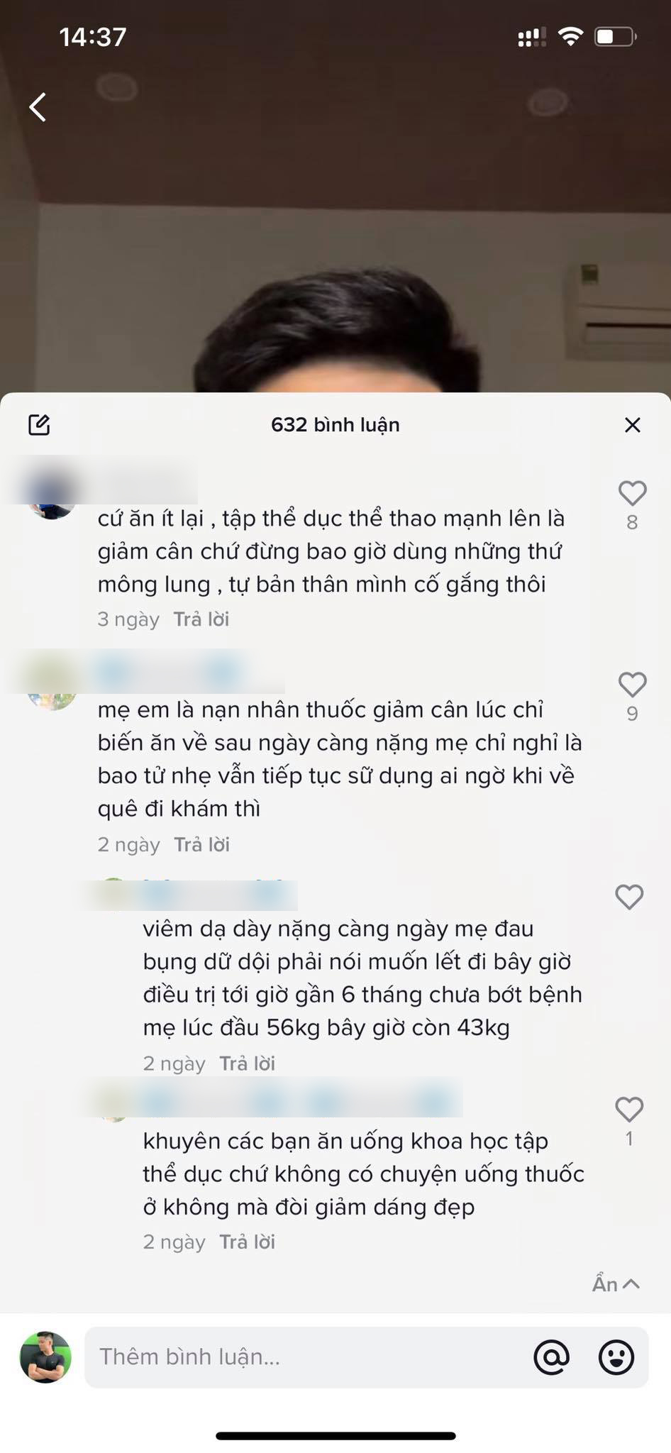 Chia sẻ dưới video review về các loại kẹo giảm cân này, một người dùng Tiktok nhắn nhủ: “Ôi các chị ơi. Đừng ăn kẹo đó. Em từng ăn rồi. Nó hành em mất ngủ, miệng thì khô, người thì không có tí sức nào… có xuống ký mà em sợ nên bỏ rồi”. Đây là trải nghiệm thực tế, đúng loại kẹo được vị huấn luyện viên đem ra bóc trần cho vô số chị em đang ham mê giảm cân nhanh. Một người khác nói: “Em từng là nạn nhân của thuốc giảm cân. Thề là không dám thử lại thêm lần nào nữa”. Một người khác khẳng định mình từng: “Nhập viện vì thuốc giảm cân”…