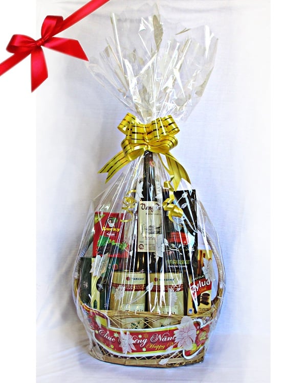 Sau khí gói quà bạn dùng máy sấy sấy xung quanh vỏ bọc quà. Nhiệt độ từ máy sấy sẽ làm túi bọc quà thu nhỏ và vừa khít xung quanh giỏ nhé !