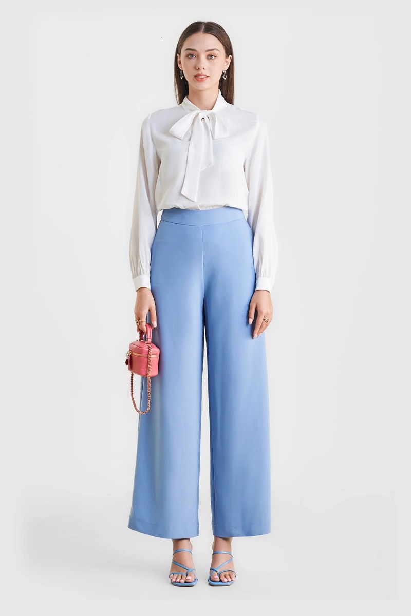 Mix quần ống rộng với áo sơ mi công sở không chỉ thanh lịch đúng chất công sở, mà còn giúp các càng trông gọn gang, duyên dáng và cao ráo hơn