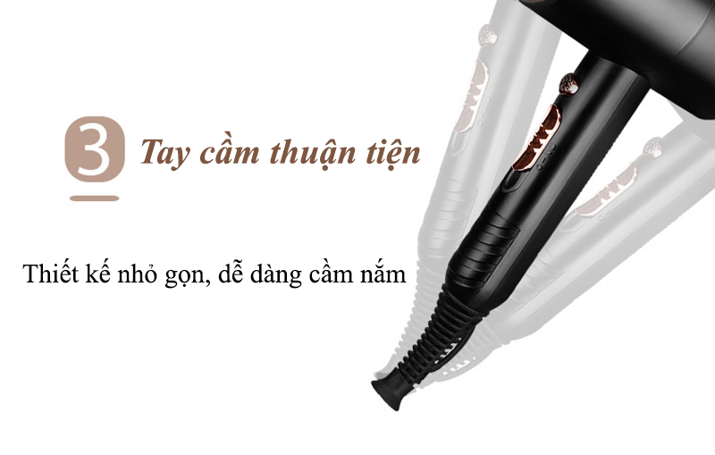 - Máy có 3 mức độ nhiệt kiểm soát và điều chỉnh tương thích theo sở trường thích nghi, loại tóc mà không sợ hư tổn .