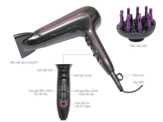 | Công dụng | Sấy khô tóc, tạo kiểu |