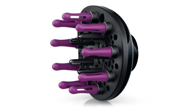 - Đầu tán khí dàn trải luồng khí qua tóc, giúp sấy nhanh và tóc khỏe mạnh hơn, tăng độ dày và giảm xoăn rối, đồng thời xoa bóp kích thích da đầu, cải thiện sức sống cho mái tóc của bạn.