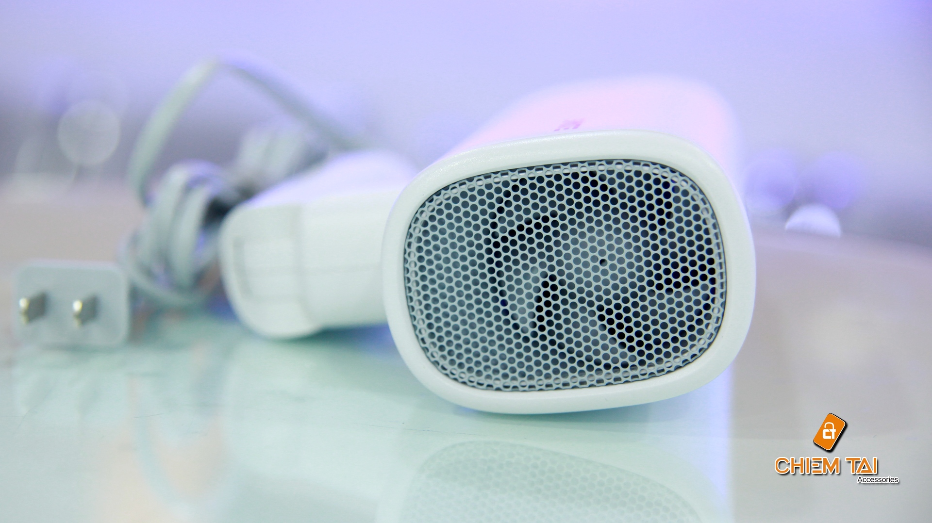 Trên miệng máy sấy tóc cấp tóc Smate Xiaomi là một mạng lưới hệ thống lưới đan sắt kẽm kim loại chịu nhiệt cao. Có năng lực chịu tải nhiệt mạnh khi sấy tóc và không bị ăn mòn, gỉ sét trong nhiều điều kiện kèm theo môi trường tự nhiên. Ở ngay bên dưới mạng lưới hệ thống lưới đan này là một lỗ nhỏ chuyên được dùng để phóng hạt anion. Cùng với đó, trên tay cầm của máy còn được trang bị một công tắc nguồn trượt để kiểm soát và điều chỉnh vận tốc hoạt động giải trí của luồng khí nóng từ máy. Không những vậy, vật liệu nhựa PVC ( Polyvinyl Clorua ) được sử dụng để gia công nên vỏ ngoài thân máy được cho phép máy có một độ bền cao, chịu được nhiệt lượng mạnh cũng như không bị bám bẩn, ăn mòn .