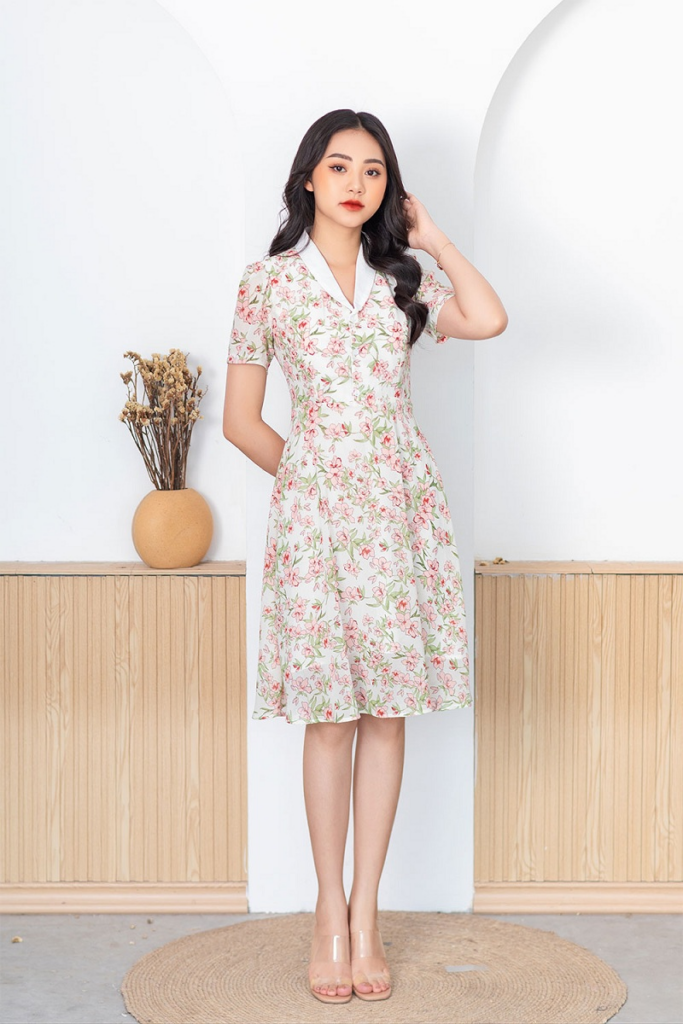 Đầm hoa oải hương đẹp đơn giản nhưng thanh lịch về thiết kế. Chắc chắn là điểm cộng cho các cô nàng công sở
