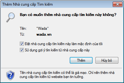 Thiết lập Wada.vn làm công cụ tìm kiếm mặc định