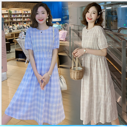 Đầm văn phòng ca rô dáng dài cho những mẹ bầu