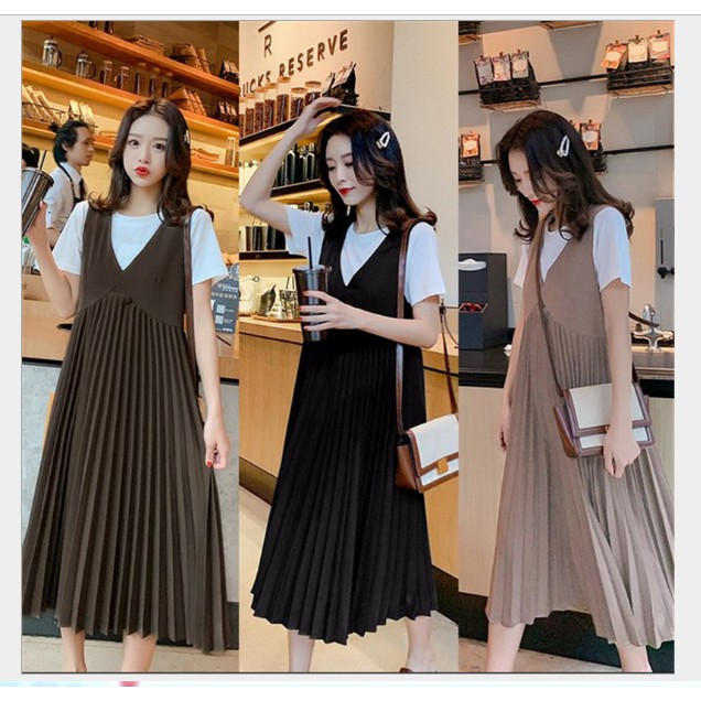 Đầm văn phòng yếm dáng dài cho những mẹ bầu .