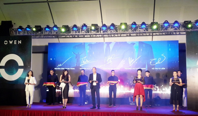 Các đại biểu triển khai nghi thức mở bán khai trương bộ nhận diện tên thương hiệu mới của Owen