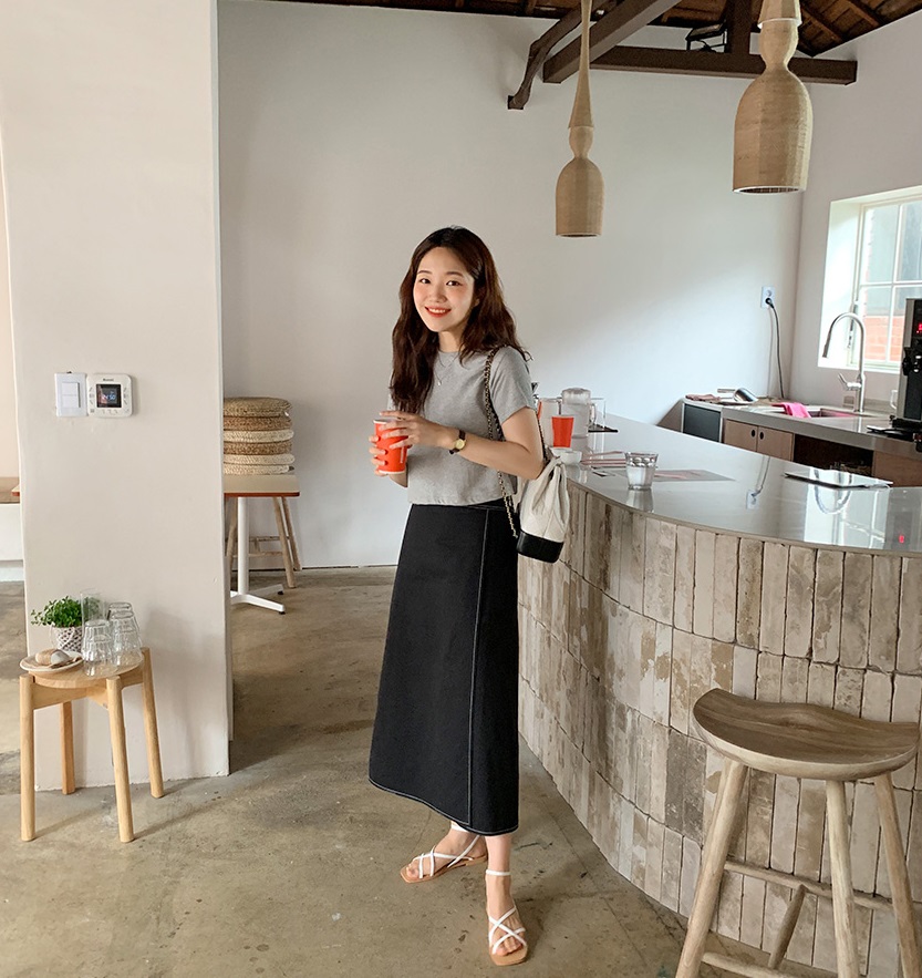 Mix chân váy đen với áo phông thun dáng lửng, bạn sẽ có được set đồ thật tươi tắn, mê hoặc. Chưa hết, áo dáng lửng cùng đôi sandal quai mảnh sẽ là những vũ khí hack dáng rất hiệu suất cao .