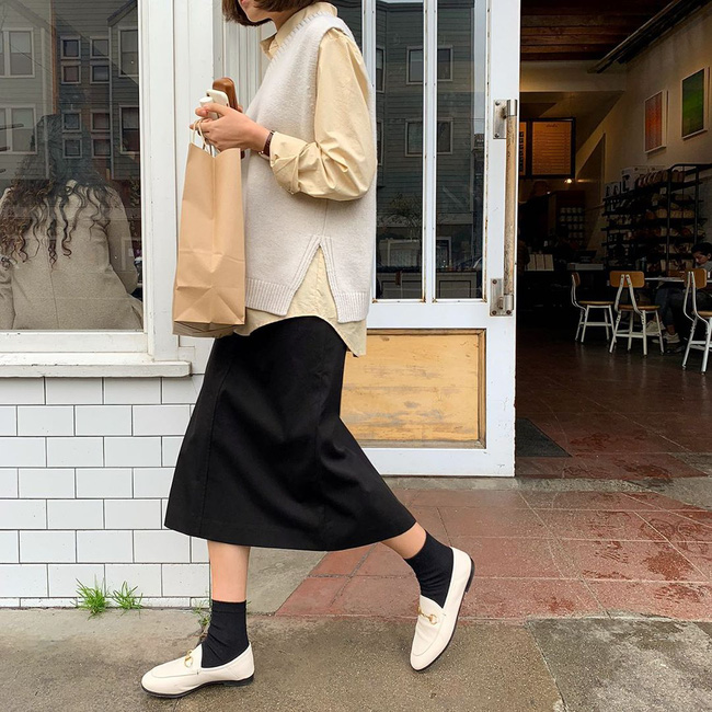 Trong những ngày thời tiết không nóng cũng chẳng quá lạnh, bạn mix áo sơ mi với áo len gilet, chân váy suông và đi giày loafer, rồi trông bạn sẽ tươi tắn, ngọt ngào phải biết. Trong trường hợp này, không sơ vin chính là một giải pháp hay vì độ ” cool ” sẽ được tăng lên .