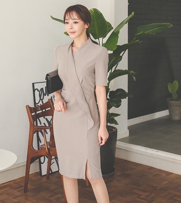 1.5. Váy công sở Hàn Quốc cổ chữ V