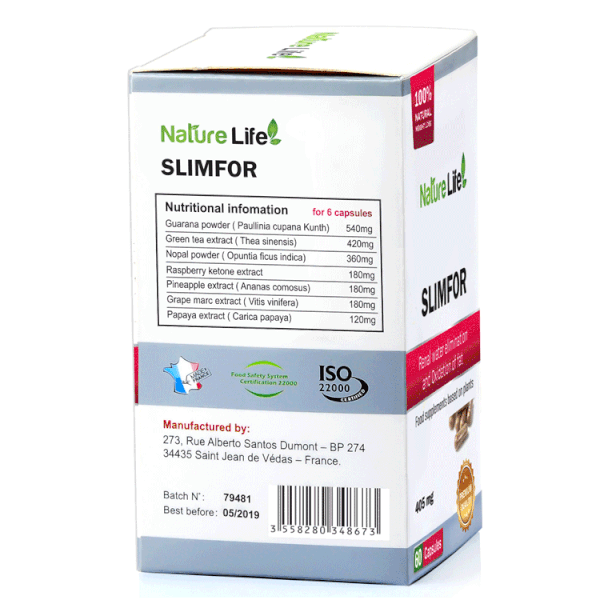 Viên uống tương hỗ giảm cân Nature Life Slimfor với thành phần chiết xuất từ vạn vật thiên nhiên như trà xanh, quả mâm xôi, cây Nopal, quả dứa, … giúp tương hỗ giảm cân, giúp bạn có được thân hình mảnh mai, thon gọn và săn chắc như mong ước .