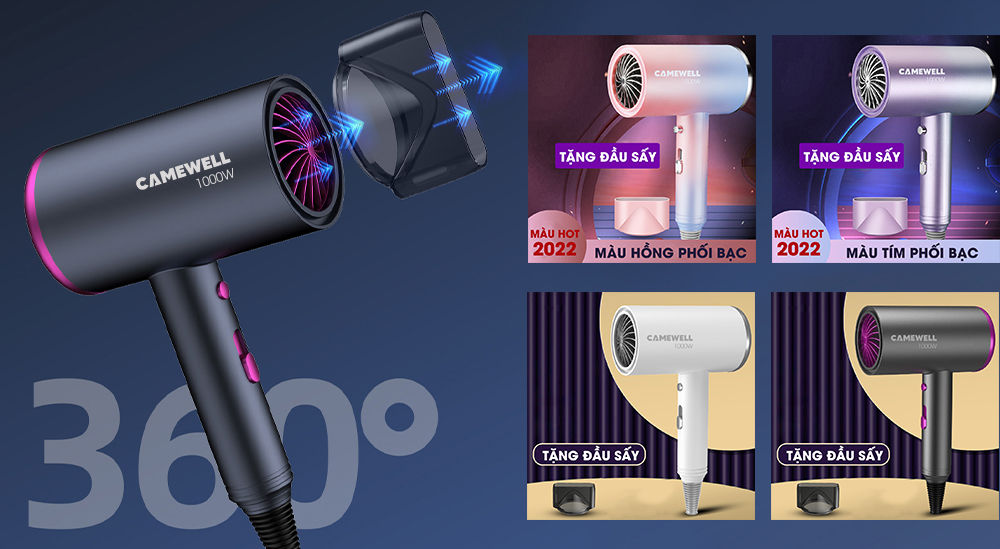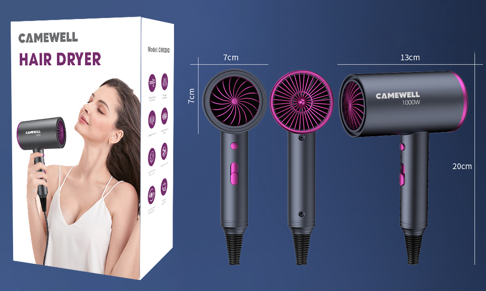 Máy sấy tóc mini CameWell công suất lớn 1000W tạo kiểu tóc chuyên nghiệp 2 chiều nóng lạnh CW02HD